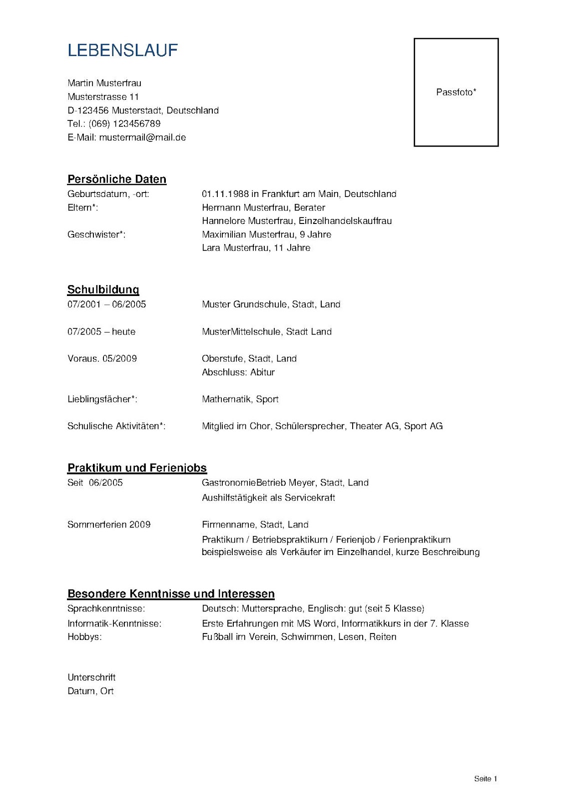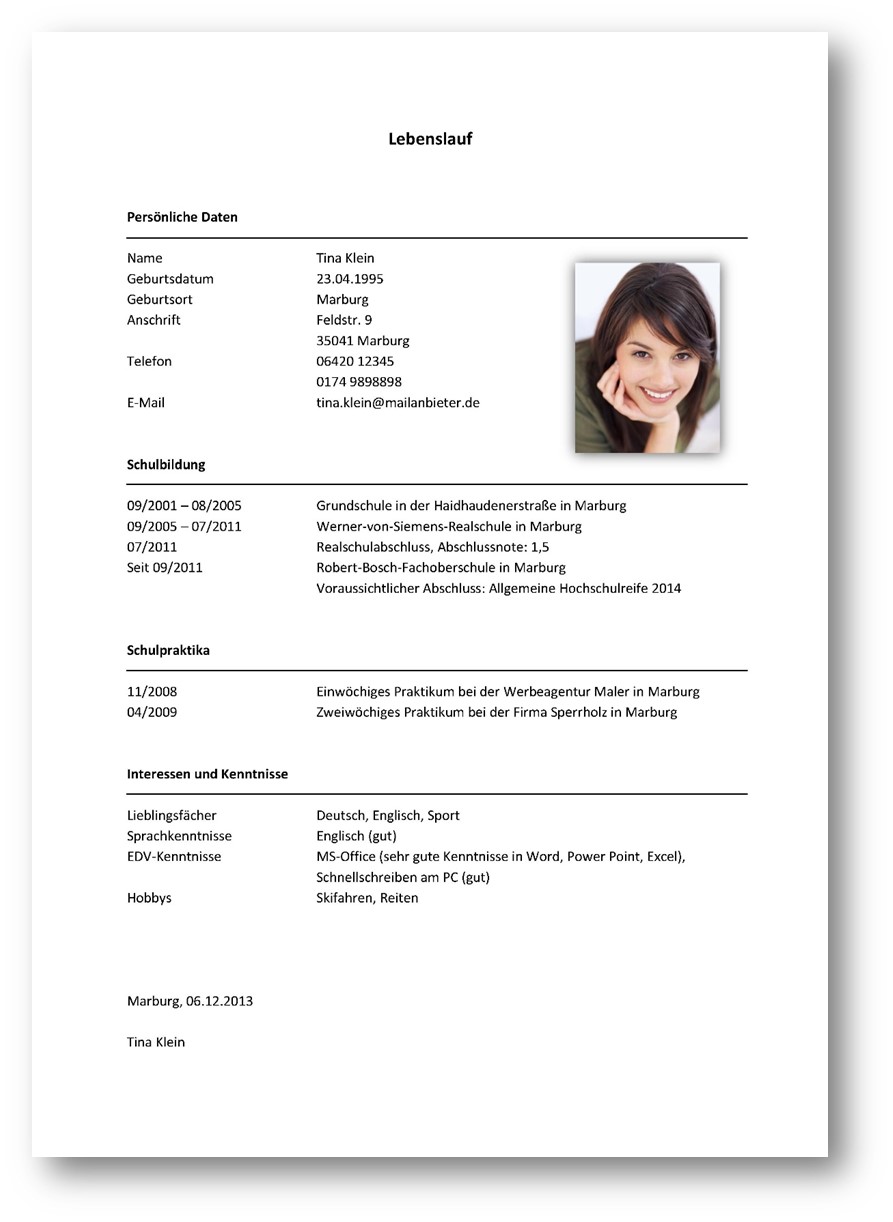 Lebenslauf Schulerpraktikum 8 Klasse Muster لم يسبق له مثيل الصور