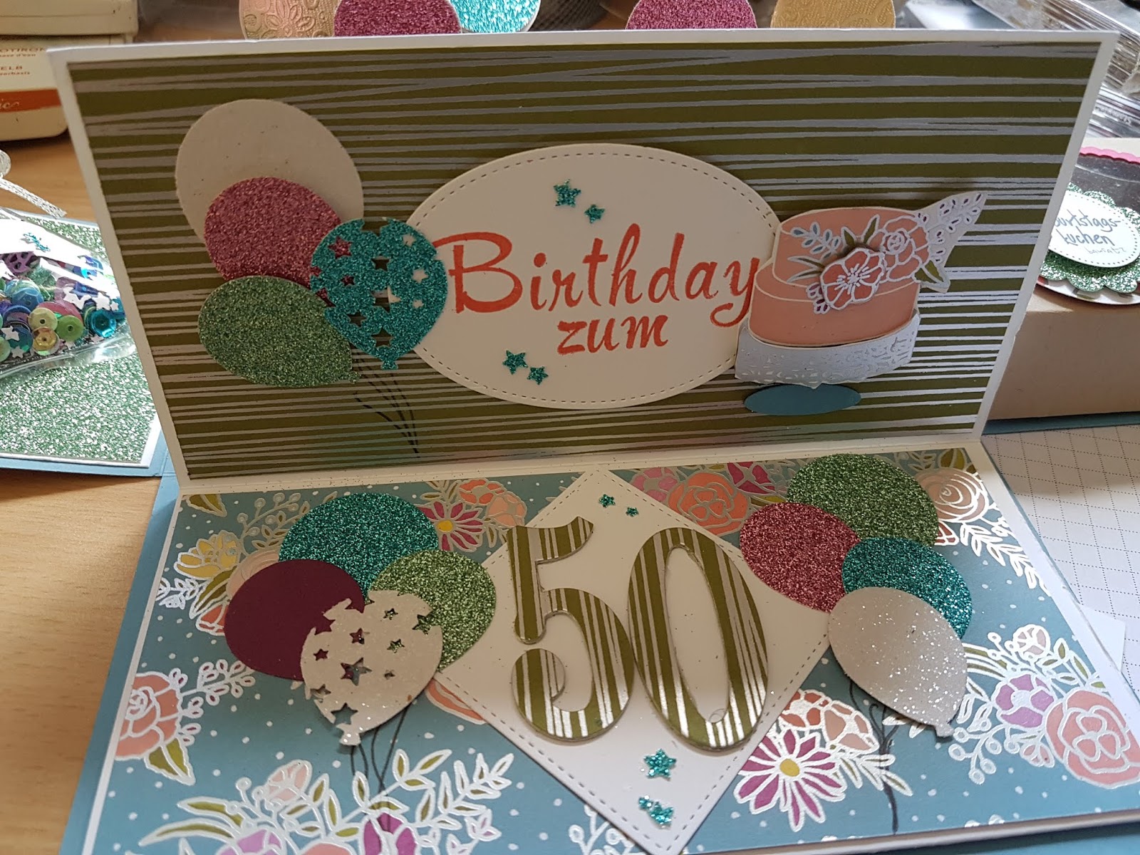 Papierkreationen Net Blumige Pop Up Panel Card Zum 50 Geburtstag