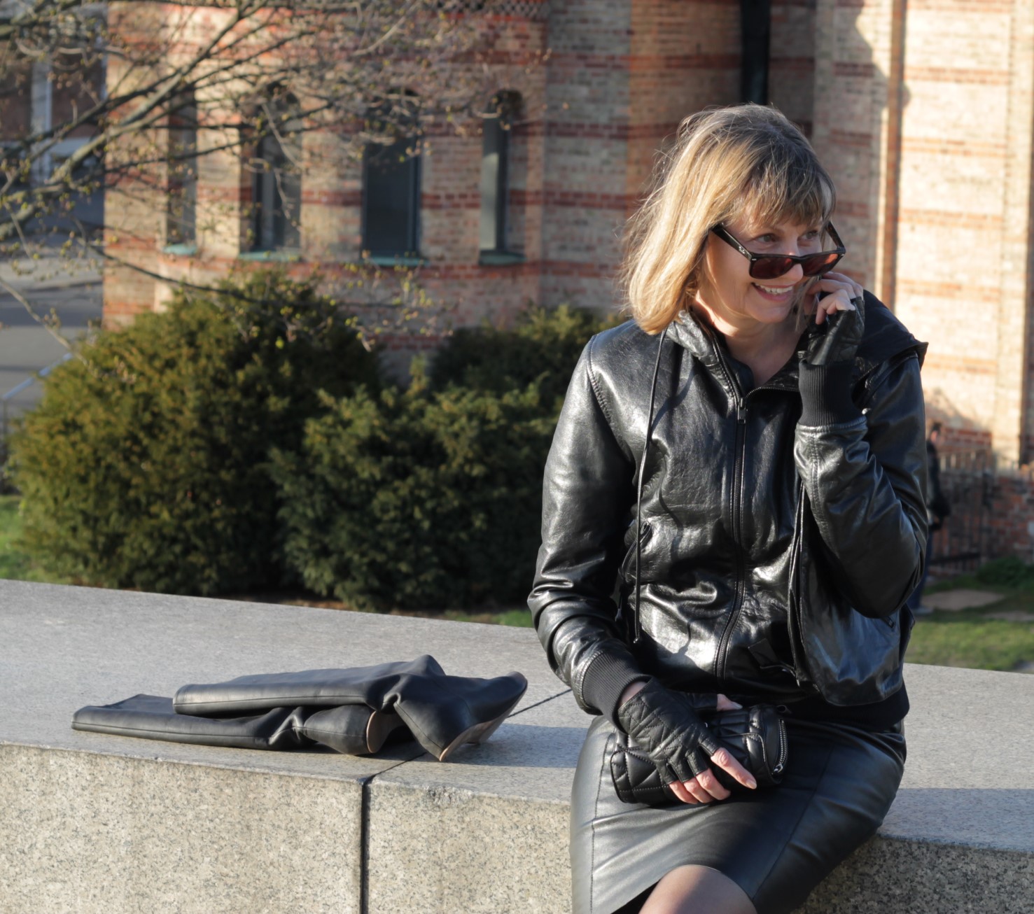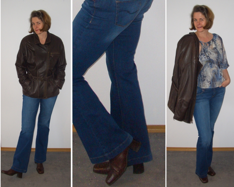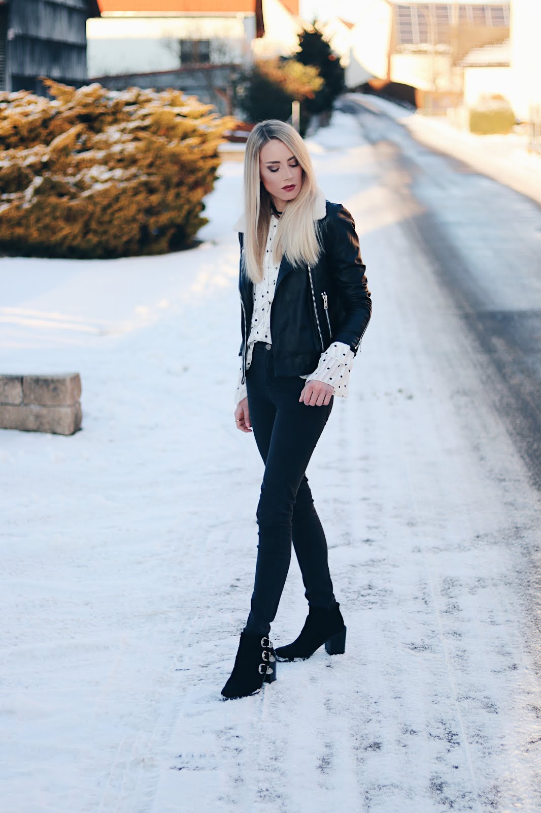Lederjacke Seidenbluse Und 70er Booties Kombiniert
