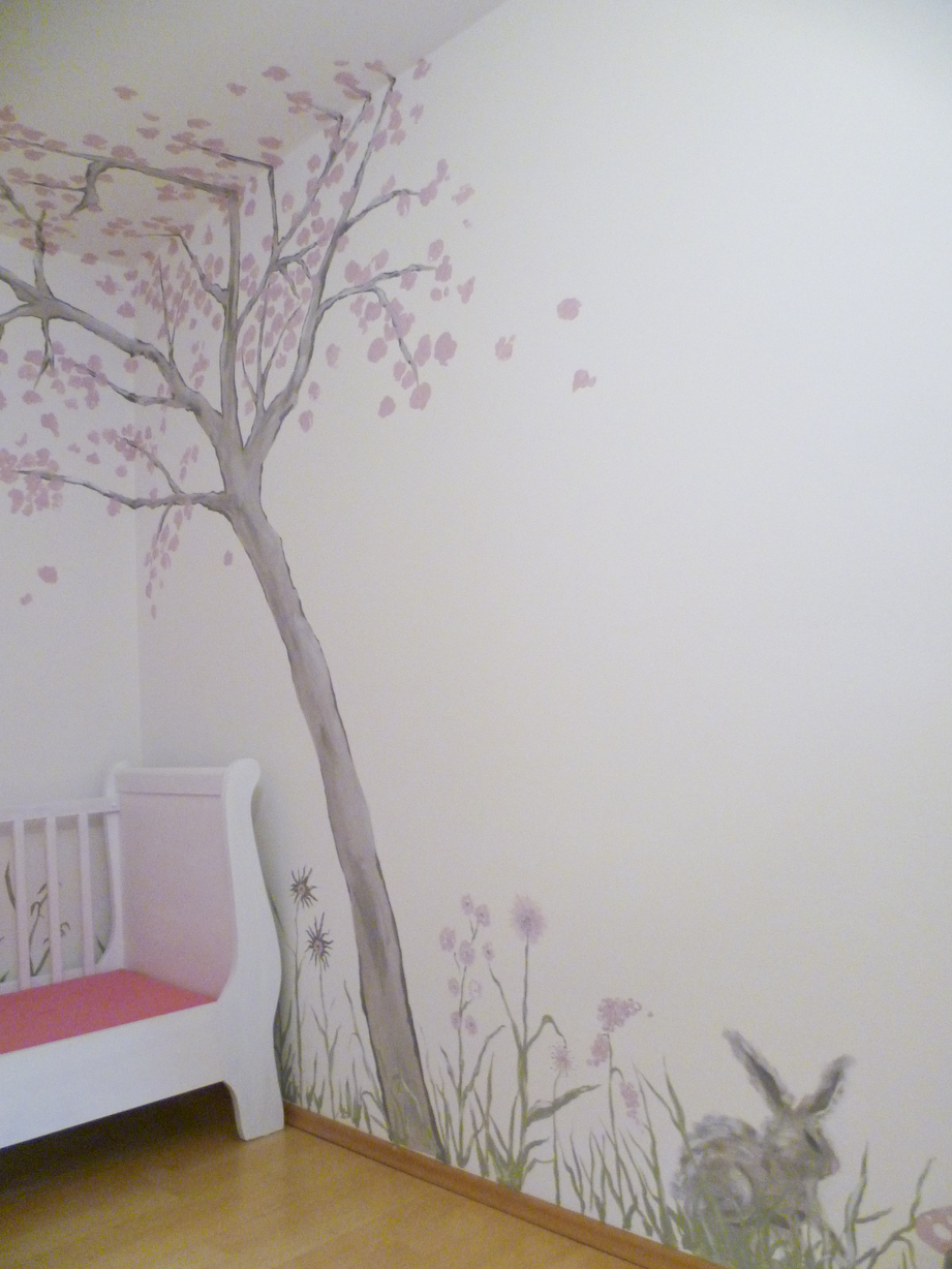 Kinderzimmer In Grau Rosa Babyzimmer Grau Wand Baum Wandtattoo